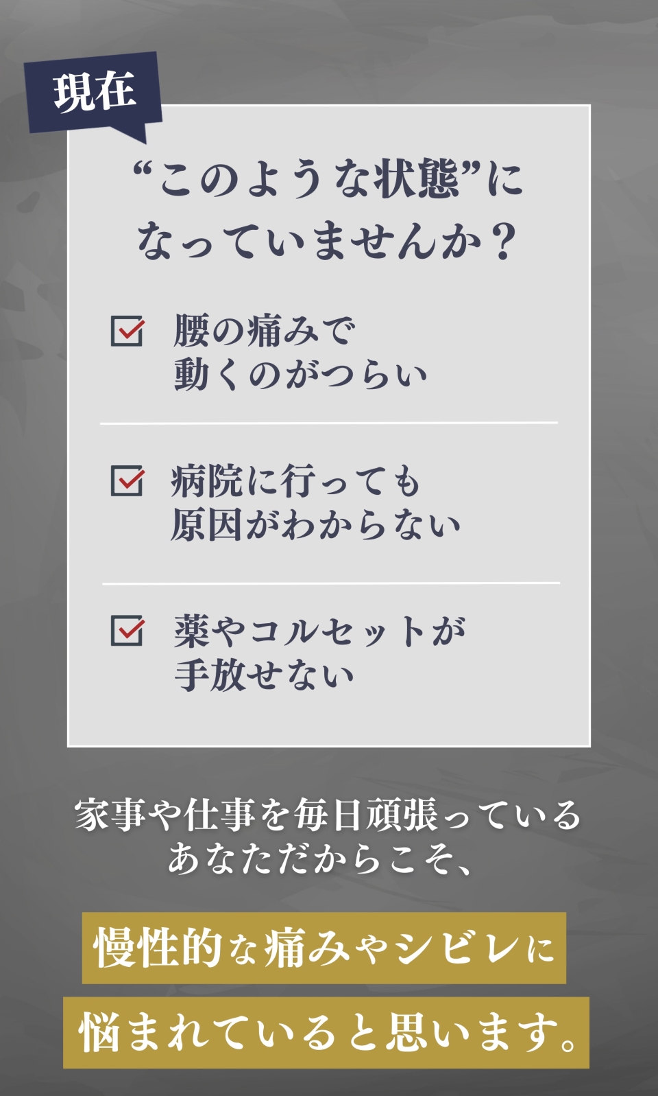 スポーツ選手や趣味で体を動かす方の中にも、コルセットや湿布に頼りながら、