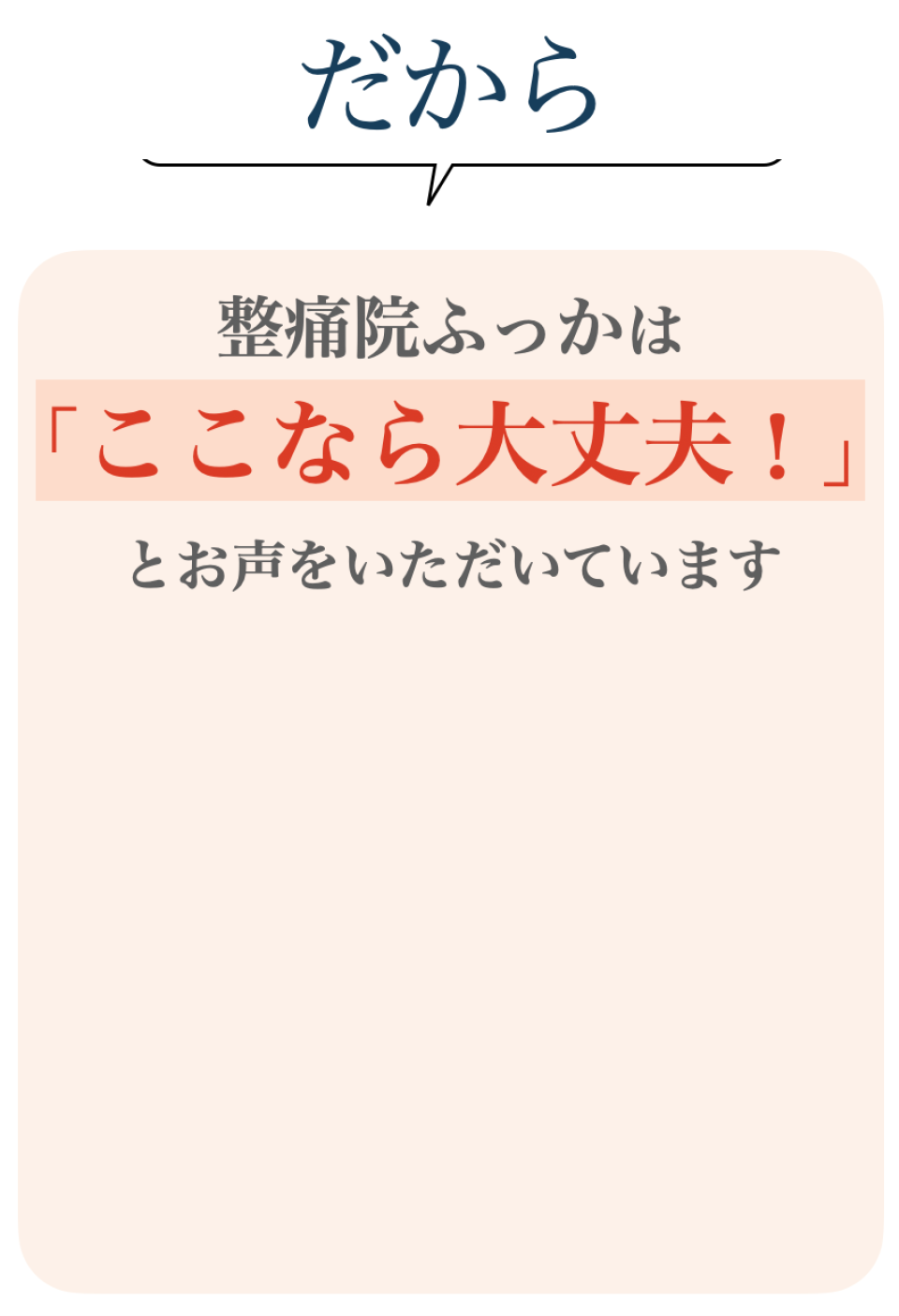 私たちはあなたに家族のように向き合い、一緒に改善の道を探し、一緒に改善させていきます。整痛院ふっか-銀座-で一緒に悩みを解決しませんか?